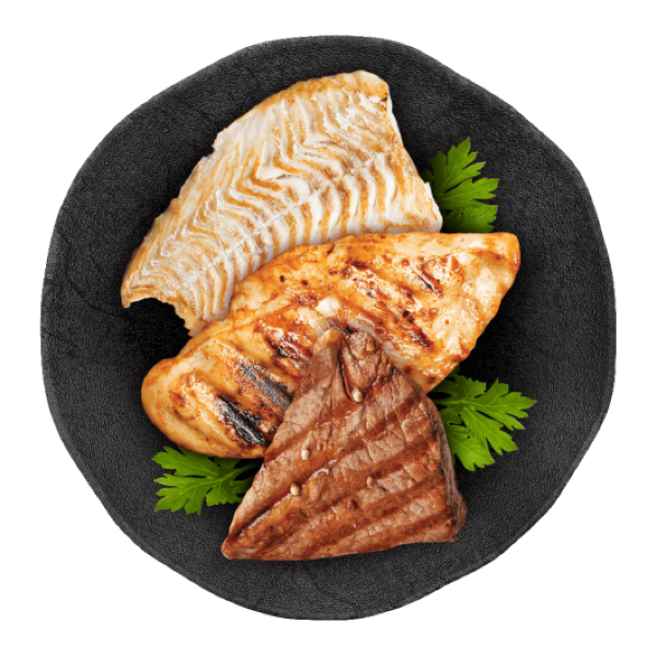 Pescado, carne de pollo, carne bovina, hígado de pollo, menudos bovinos, menudos de cerdos, harina de chicharrón, grasa de pollo, plasma de cerdo en polvo, agua, fibra de caña de azúcar, taurina, cloruro sódico (sal común), cloruro de colina, tripolifosfato de sodio, palatabilizante, espesantes (carragenina, goma guar y goma xantana), colorante natural caramelo, vitaminas (A, B1, B2, B6, B12, D3, E, K3, niacina, ácido pantoténico, ácido fólico y biotina) y minerales (complexo zinc aminoácido quelato, yodato de calcio, selenito de sodio, sulfato de cobre, sulfato de manganeso, carbonato de calcio, cloruro potásico, sulfato de zinc, sulfato de hierro).