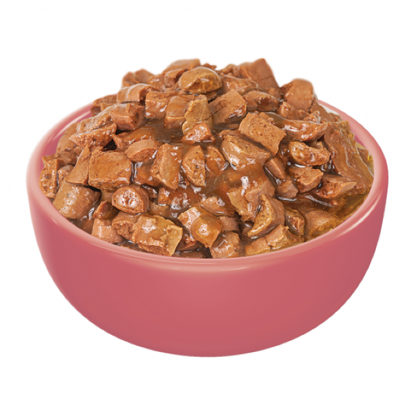 Carne bovina, menudos bovinos, menudos de pollo, carne mecánicamente separada de pollo, taurina, plasma de cerdo en polvo, harina de vísceras de pollo, gluten de trigo, harina de trigo, cloruro sódico (sal común), tripolifosfato sódico, palatante, vitaminas (A, B1, B12, B2, B6, D3, E, K3, ácido fólico, ácido pantoténico, biotina, niacina, cloruro de colina), minerales (zinc orgánico, sulfato de zinc, yodato de calcio, selenito sódico, sulfato de cobre, sulfato de manganeso, sulfato de hierro, carbonato cálcico y cloruro potásico), colorante natural caramelo, espesantes (goma guar y carragena) y agua.