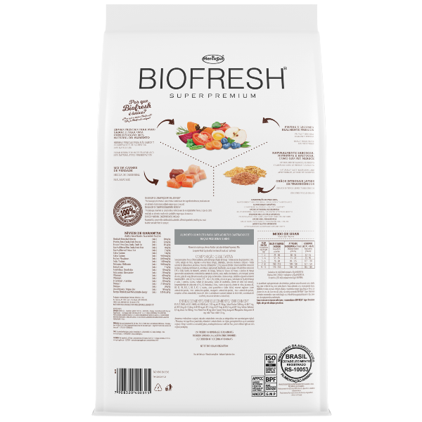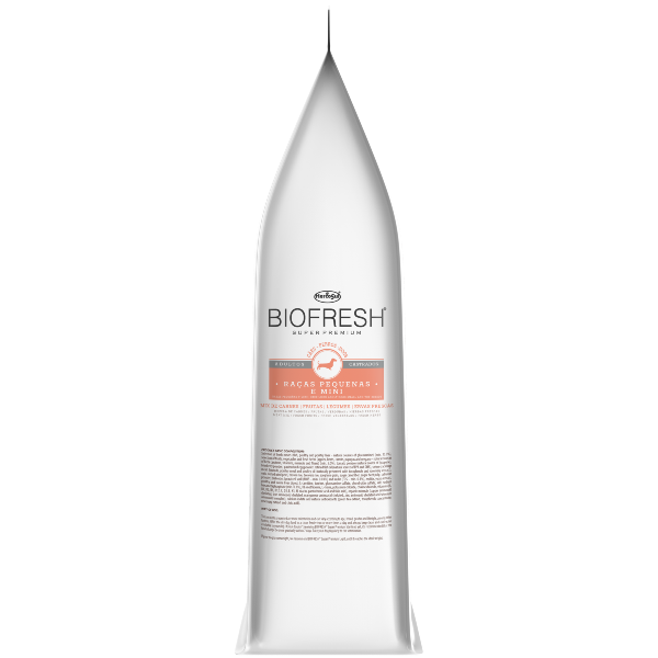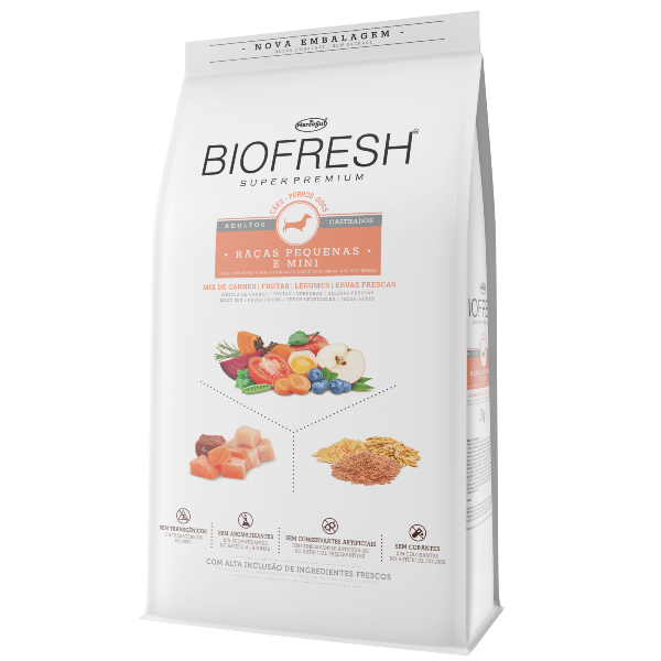 Biofresh Super Premium es innovador y diferente porque tiene una alta inclusión de ingredientes realmente frescos, directamente de la naturaleza. El resultado es un alimento completo y equilibrado que destaca por elevar al máximo nivel la nutrición de los perros castrados de razas pequeñas y mini. Biofresh Super Premium Castrado ayuda a controlar el hambre entre horas y mantener el peso corporal ideal, características muy importantes para conservar la salud después de la castración. La tecnología Biofresh garantiza la conservación de este alimento de forma segura y 100% natural, sin la adición de conservantes artificiales.